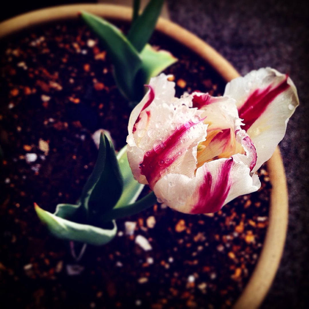 雨に濡れたチューリップ