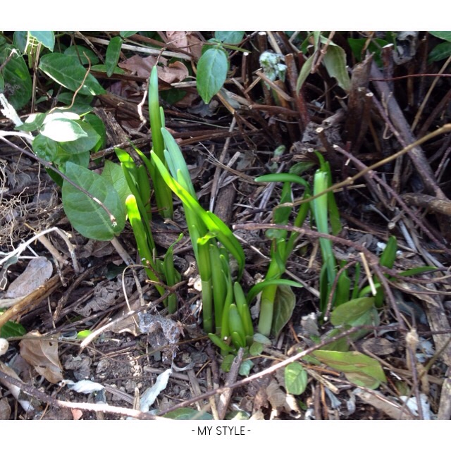 枯れ枝や落ち葉を片付けたら、芽が出てるのに気付いてほっこり(*´∀`*)