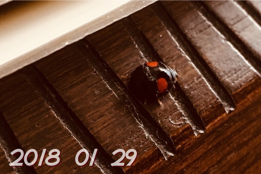 昨日、カレンダーにとまってて、てんとう虫だと認識。