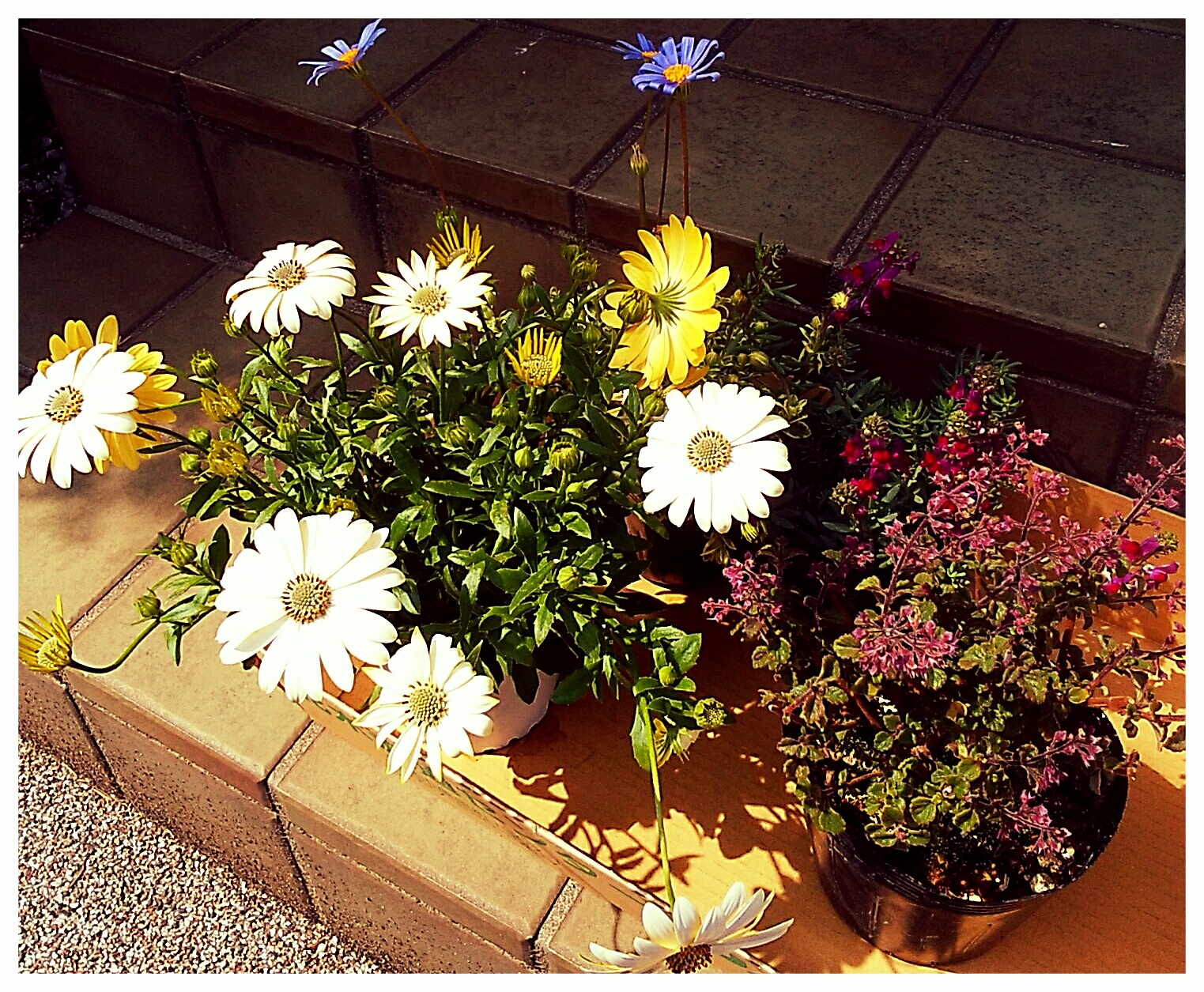 空いたスペースに春の花などを植えた。